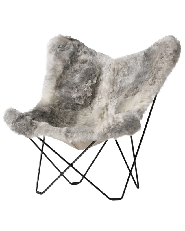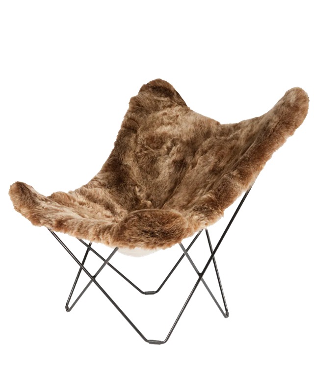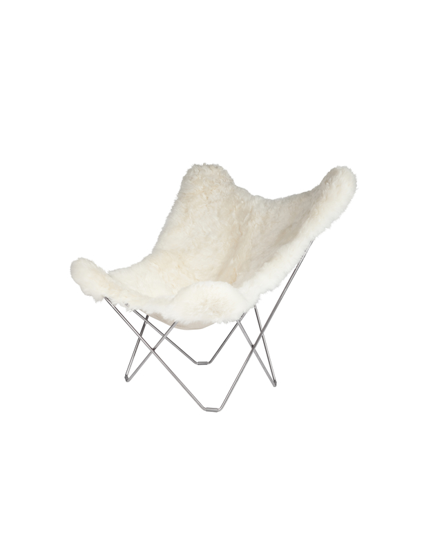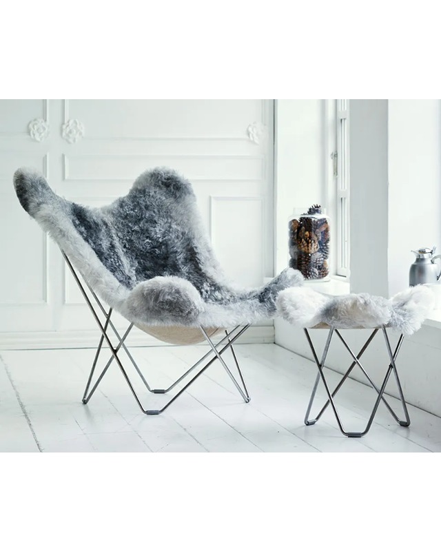 The CUERO Iceland Butterfly Chair is made in Sweden using Swedish steel and genuine natural Icelandic Sheepskin, with a clear focus on quality and sustainability. A matching footstool is available to compliment the chair.